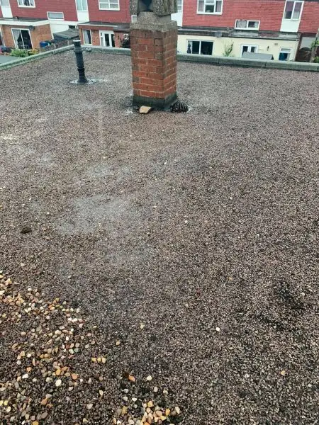 We stripped off the previous roofing membranes to reveal the 50mm Woodwool slab. We then over boarded the woodwool slab with Structural moisture resistant OSB3 boards screwed into the joists. This is to give the roof a firm base as the Woodwool slab is classed as a fragile roof. We then applied a 2mm torch on underlay felt followed by a 4.5mm black mineral torch on high performance felt Capsheet. All edging details were also finished in the same material. This roofing system carries our standard 15 year manufacturers guarantee. All waste was removed from site and disposed of in the correct manner. Customer very happy when we left the job. ??